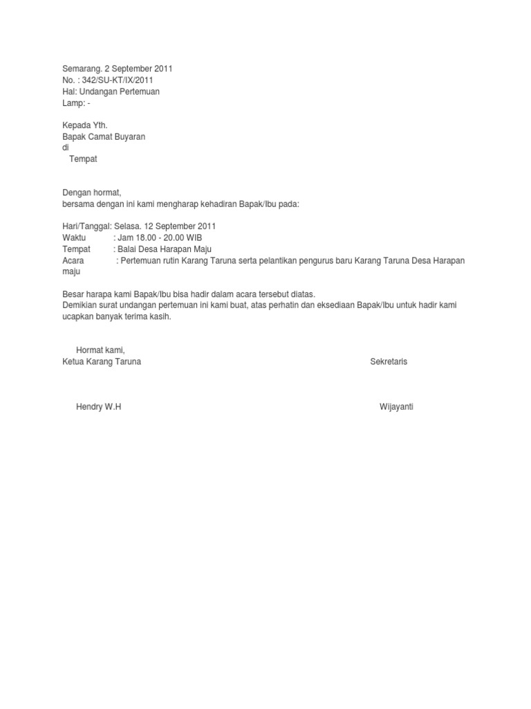 Contoh surat undangan untuk lurah have a graphic from the other.contoh surat undangan untuk lurah it also will feature a picture of a sort that may be observed in the gallery of contoh surat undangan untuk lurah. Maybe you would like to learn more about one of these? Dalam pembuatannya, surat ini memiliki beberapa hal yang harus diperhatikan terkait struktur surat tersebut. Mohon maaf apabila banyak kesalahan dalam penulisan artikel atau informasi tersebut yang ada kaitannya dengan. Semua gambar pada contoh undangan untuk gubernur dan website ini 100% gratis.